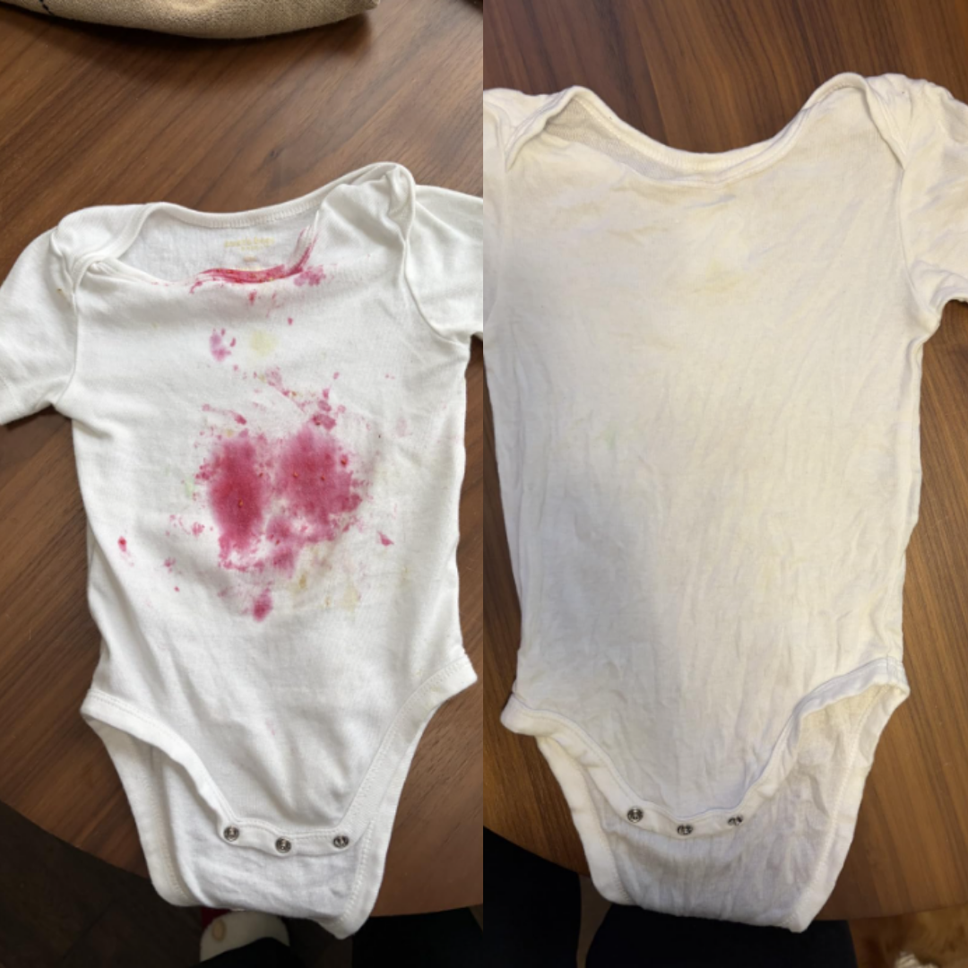 Como mamá de un niño pequeño, no sé cómo he vivido tanto tiempo sin esto. Es un salvavidas para las manchas de los niños (¡sobre todo de pasta!). PD: No es tan bueno con las manchas de vino (pero no esperaba gran cosa, jaja).