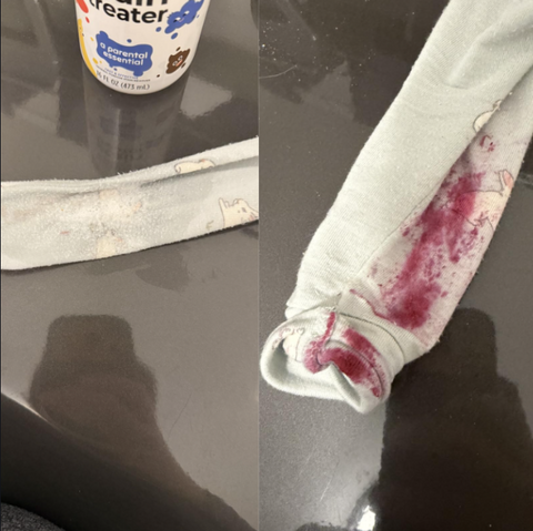 Mi sobrina se metió la baba más resistente en la ropa y probé todos los trucos para sacarla, pero la ropa era de un material especial. Estaba a punto de donarla, pero es su favorita. Así que probé Miss Mouth's y con el spray, agua tibia y un cepillo de dientes la saqué por completo. ¡10/10! ¡Valió totalmente la pena el precio! ***Esta no es una reseña pagada como otras que veo aquí.